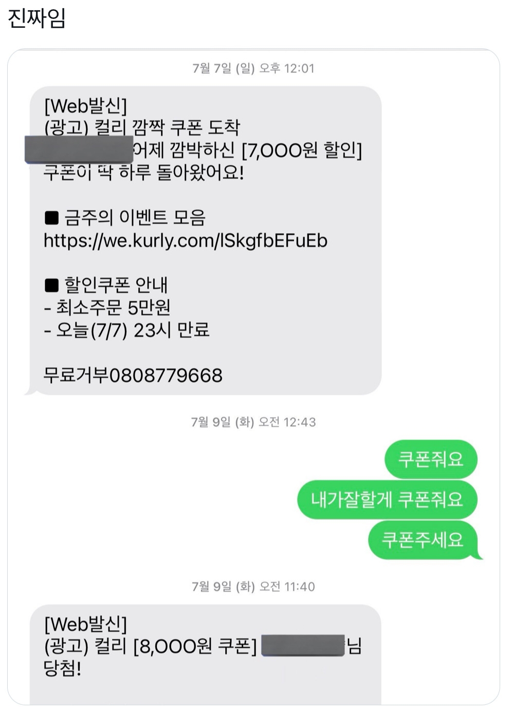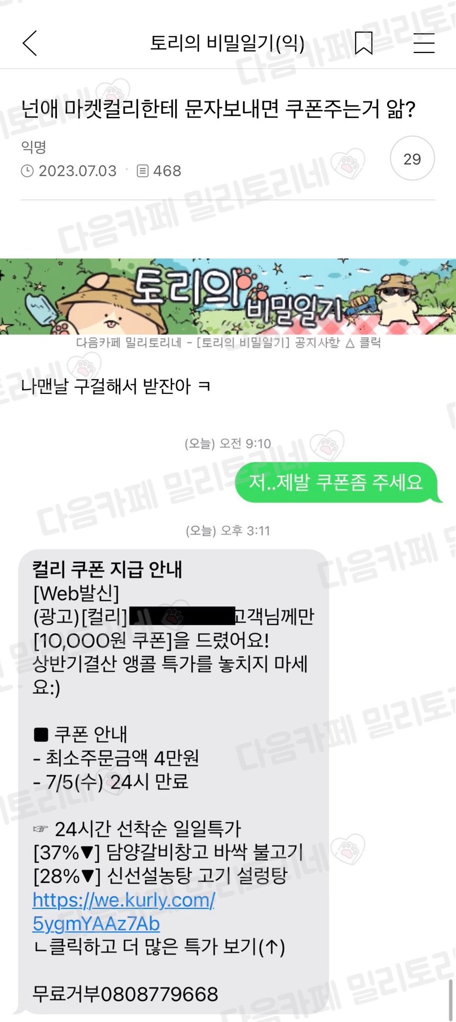 무릎 꿇고 싹싹 빌면 쿠폰 준다는 마켓컬리   +5