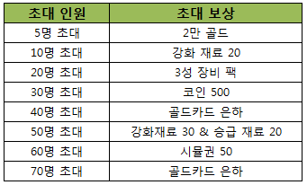 2. 초대 보상 추가 및 초대 가능 수 증가
