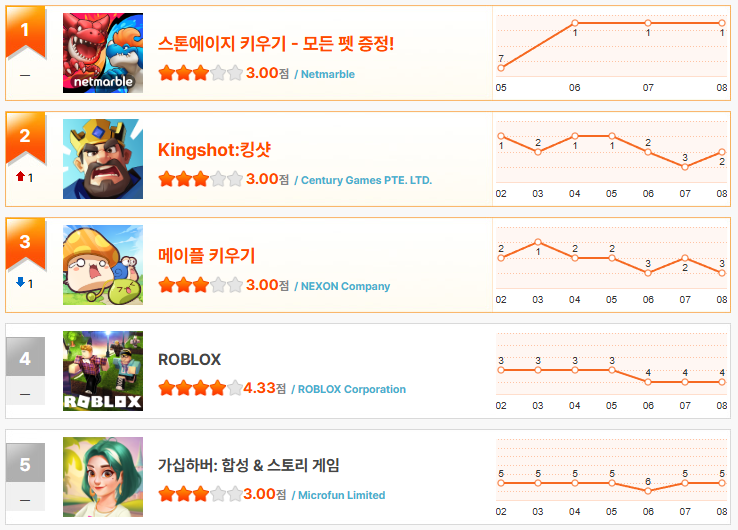 모바일 게임순위 3월 1주차 랭킹
