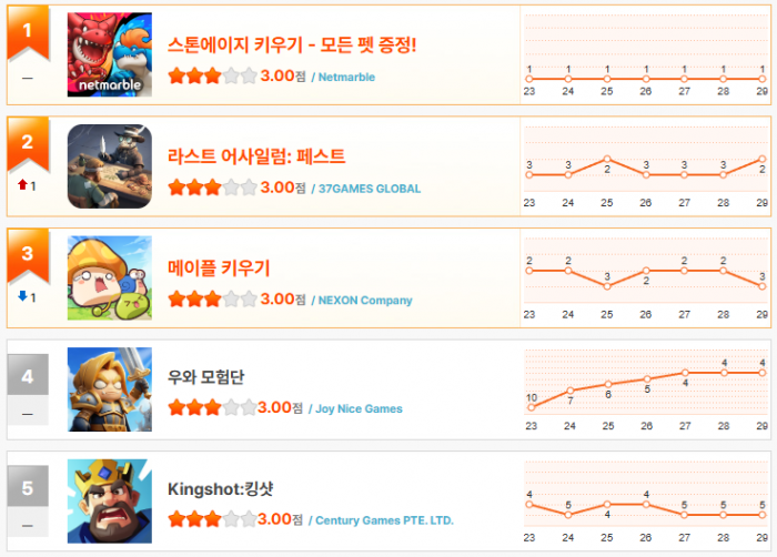 헝그리앱 3월 4주차 모바일 게임 랭킹에서는 신작들의 강세가 두드러지며 전반적인 판..
