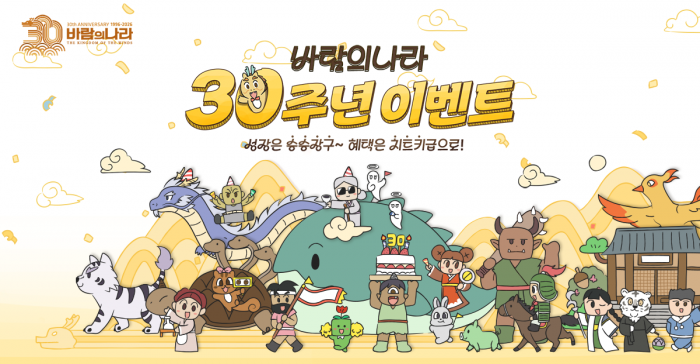 넥슨은 2일 온라인 RPG ‘바람의나라’에 서비스 30주년 기념 대규모 업데이트를 ..
