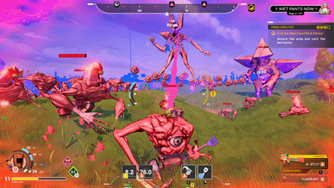 전투 중 머리, 다리, 몸통 등 신체 부위를 전리품처럼 획득해 교체(스왑) 하며, 플레이어는 새로운 능력과 업그레이드 옵션을 얻게 된다. 이 시스템은 랭거스 미트의 특허 기술인 ‘스마트 미트(Smart Meat)’ 를 기반으로 하며, 전투 도중에도 즉석에서 플레이 스타일을 완전히 바꿀 수 있다. 플레이어가 쓰러뜨린 외계 생명체마다 고유한 능력을 가진 새로운 신체 부위를 제공한다 — 예를 들어, 삼단 점프가 가능한 다리(Triple-Jump Legs), 자동 포탑을 소환하는 몸통(Turret-Dropping Torsos), 혹은 수류탄을 발사하는 칠면조 머리(Grenade-Launching Turkey Head) 등이 있다. 모든 신체 부위는 전투 방식 자체를 완전히 바꿔놓는다. 시간은 언제나 플레이어의 편이 아니며, 압박은 결코 멈추지 않는다. 혼돈 속에서 살아남는 법을 배우거나, 아니면 말 그대로 그 혼돈에 의해 갈기갈기 찢기게 될 뿐이다.