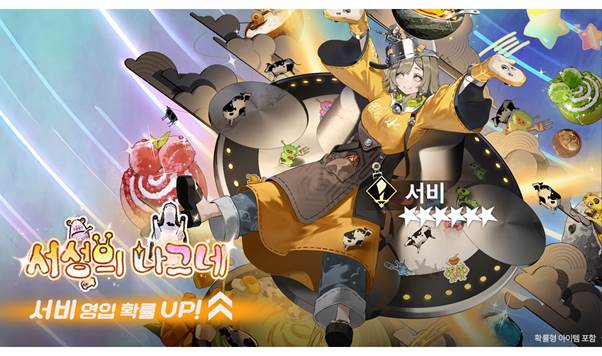 또한 ‘서성의 나그네’에서는 ‘서비’를 획득할 확률이 상승하고, ‘스킨 핫라인’에서는 6성 요원 ‘카라스’의 획득 확률이 증가한다.