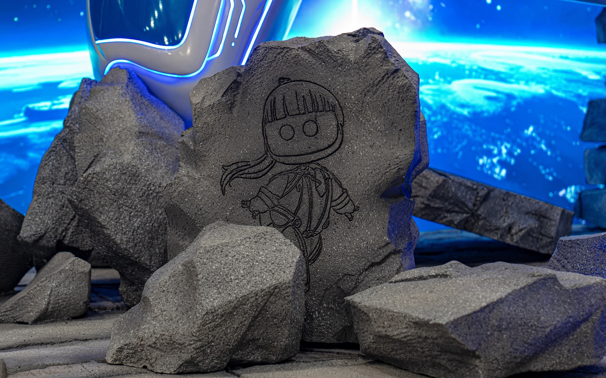 이번 전시는 타이틀의 주인공 캡틴 ‘ASTRO’가 DualSense 무선 컨트롤러 형태의 우주선 '듀얼 스피더'를 타고 서울역에 불시착하는 장면을 초대형 3D 조형물로 구현했다. 조형물 뒤편에는 거대한 백월과 역동적인 LED 조명으로 우주 배경을 연출해 게임 속 격렬한 사건 현장에 있는 듯한 몰입감을 극대화했다.