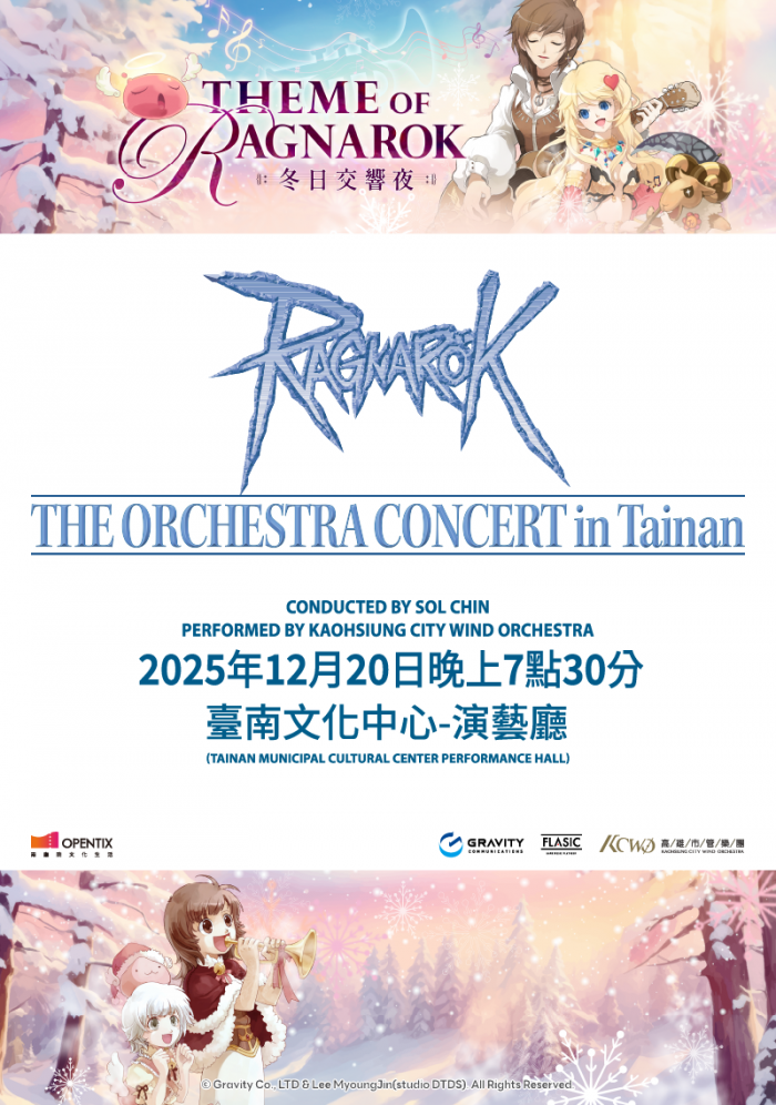 THEME OF RAGNAROK는 라그나로크 온라인 BGM을 감상할 수 있는 콘서트로 12월 20일 대만 타이난 문화센터 공연예술관에서 약 1,500석 규모로 진행한다. 공연은 그라비티 본사가 직접 기획한 라그나로크 게임 음악 콘서트로 2023년 5월 한국에서 공연을 시작한 이래 태국, 대만, 브라질에서 매번 공연장에 관객을 가득 채우며 성공적으로 마친 바 있다.