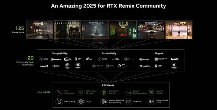 이러한 엔비디아 RTX 리믹스의 발전은 커뮤니티에도 큰 영향을 미쳤다. 새로운 리믹스 모드와 도구들이 출시되었고, 다양한 플러그인이 제공되었다. 또한, 엔비디아 앱을 통해 직접 RTX 모드를 만들어볼 수 있으며, 모드DB나 RTX 리믹스 쇼케이스 디스코드 서버를 통해 다양한 모드를 찾아볼 수 있다.