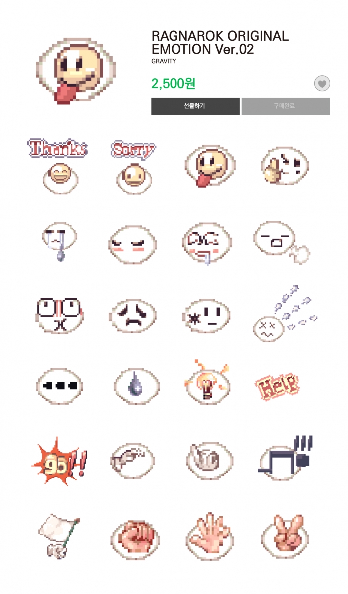 글로벌 게임 기업 그라비티가 LINE 메신저용 ‘RAGNAROK ORIGINAL EMOTION Ver.02’ 이모티콘을 출시했다고 19일 밝혔다.