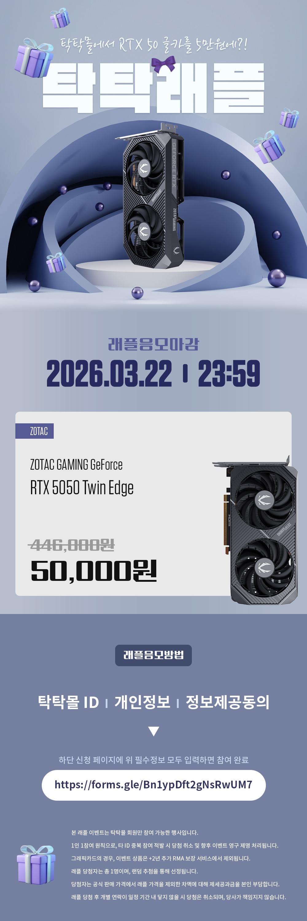 • [기타] 최신 RTX 5050 그래픽카드를! 조텍 3월 래플 이벤트 진행