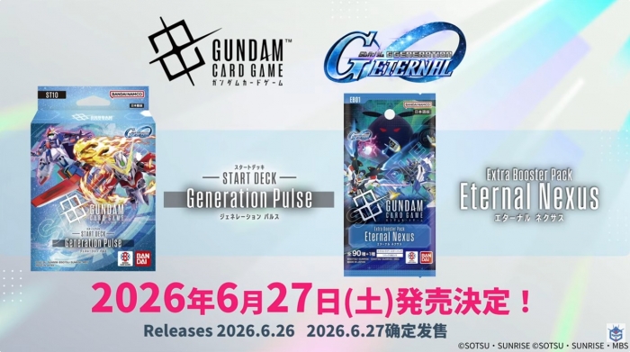 3월 28일에는 건담 카드 게임 ‘얼티밋 덱’이 발매되며, 4월 25일에는 ‘팬텀 아리아’ 부스터가 출시된다. 이어 6월 27일에는 스타트 덱 ‘제너레이션 펄스’와 부스터 ‘이터널 넥서스’가 차례로 발매된다.