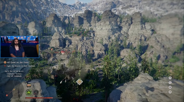 붉은사막의 퀘스트라인 데모는 쇼케이스 마지막에 소개돼 이목을 집중시켰다. 쇼 호스트들은 벌목, 아이템 훔치기 등 오픈월드의 재미 요소뿐만 아니라, 오브젝트의 사실적인 물리효과를 경험했다.