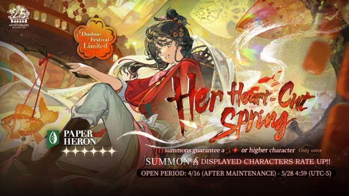 버전 3.4의 핵심은 신규 6성 캐릭터들의 합류다. 먼저, 도사풍의 방랑 검객 콘셉트를 지닌 한정 6성 캐릭터 페이퍼 헤론(Paper Heron)이 배너 ‘허 하트-컷 스프링(Her Heart-Cut Spring)’을 통해 등장한다. 해당 배너에서는 추가 소환 보상도 제공되며, 캐릭터의 스토리와 전투 스타일도 함께 공개될 예정이다. 업데이트 후반부에는 신규 6성 캐릭터 청허광(Cheng Heguang)이 ‘소어링 애스피레이션즈(Soaring Aspirations)’ 배너를 통해 합류한다. 청허광은 강한 신념과 정의감을 가진 캐릭터로 팀 조합의 전략적 폭을 넓혀줄 것으로 기대된다.