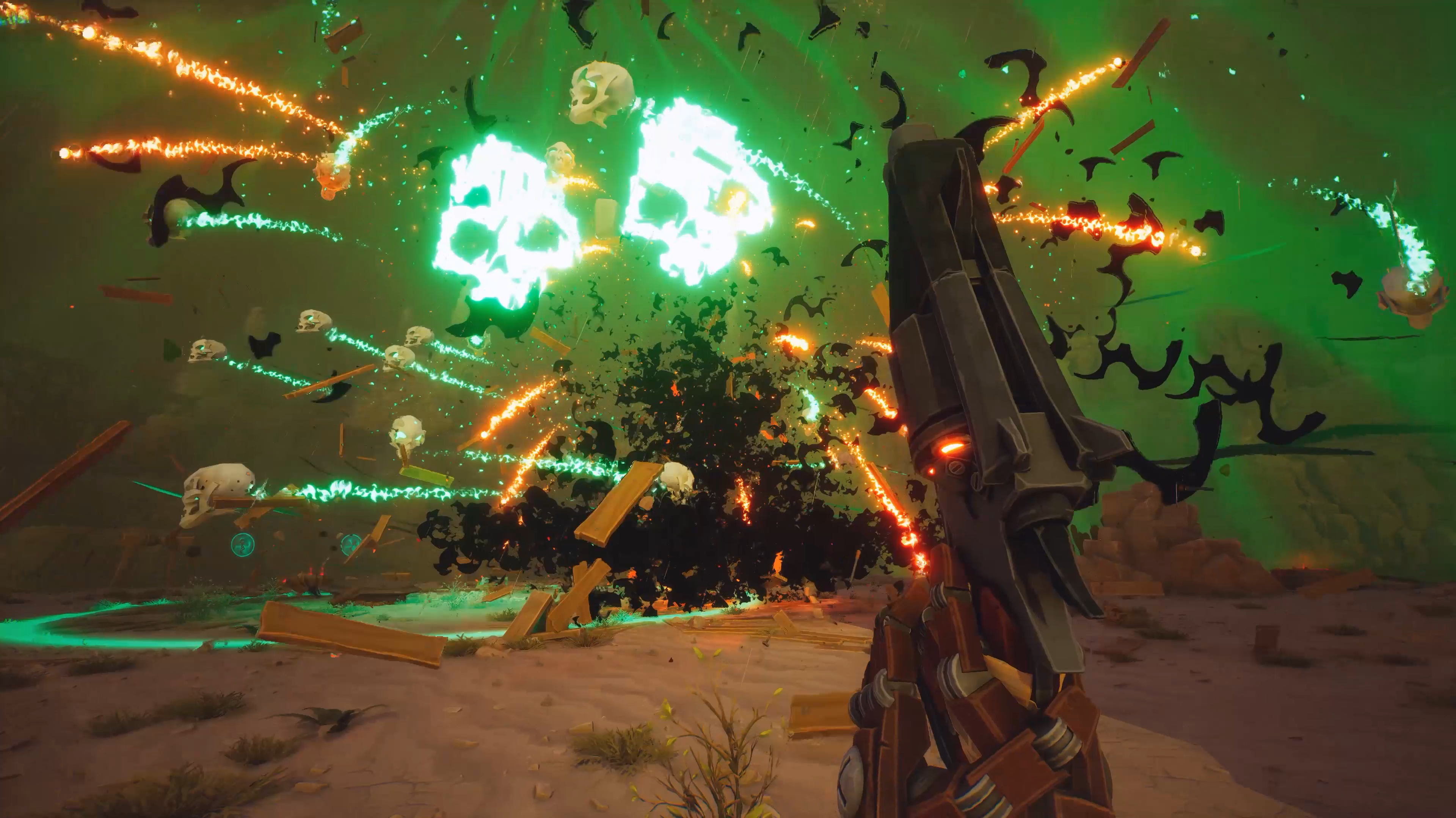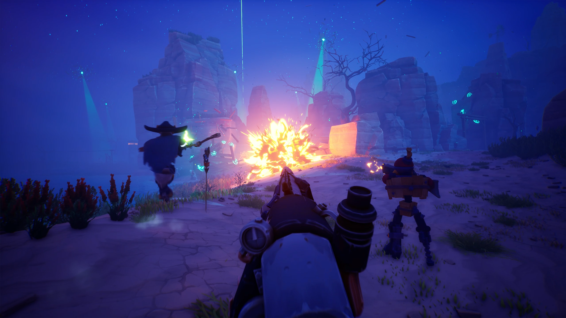 게임은 기묘하게 뒤틀린 서부 개척지를 배경으로 펼쳐지는 협동 FPS로, 플레이어는 로봇 카우보이 현상금 사냥꾼이 되어 혼자 또는 최대 4인의 동료와 함께 위험한 계약에 나서게 된다. 단순한 사격 실력만으로는 생존이 어려운 환경 속에서, 해골과 거대한 독수리, 유령 열차 등 언데드 위협이 끊임없이 등장하며 긴장감을 더한다. 플레이어는 탄약 관리와 더불어 폭발적인 마법 능력을 활용하고, 때로는 운까지 시험하며 전장을 돌파해야 한다.