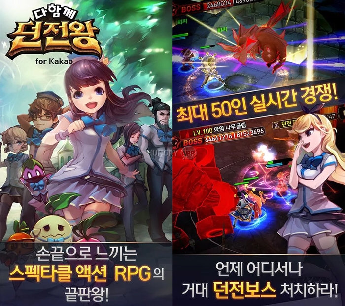 다함께 던전왕 for Kakao는 넷마블블루(구 블루페퍼)가 개발, 최대 50명의 친구들과 함께 모험을 떠나는 블록버스터급 모바일 RPG로 터치 방식의 조작법과 자동전투 시스템을 도입해 방대한 콘텐츠와 화려한 전투를 언제 어디서나 누구나 쉽게 즐길 수 있도록 구현했다.