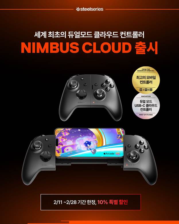 게이밍 기어 브랜드 스틸시리즈(SteelSeries)가 세계 최초 모바일 및 풀사이즈 디바이스용 듀얼 모드 클라우드 컨트롤러인 ‘님버스 클라우드(Nimbus Cloud)’를 국내에 런칭한다고 밝혔다.