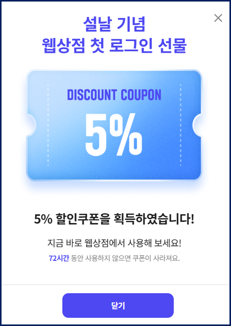 [설날 기념 웹상점 5%할인 쿠폰] 지급