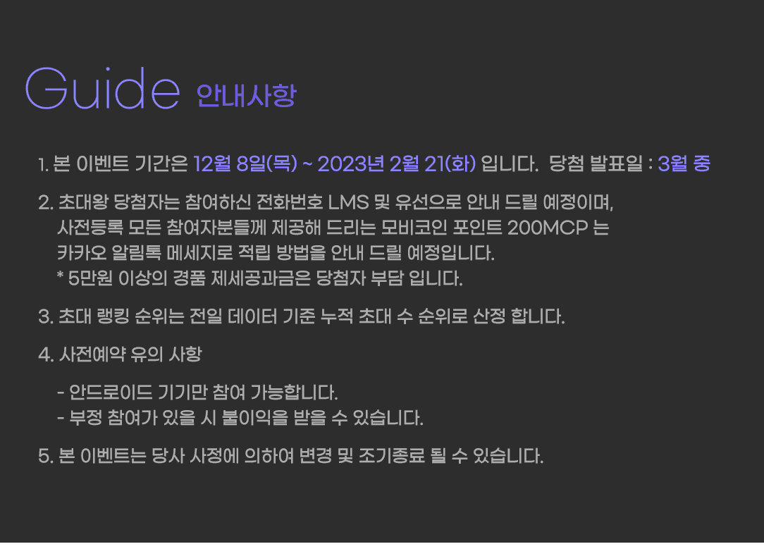| 2등 | 010-6xxx-8734 | 1236 | 갤럭시Z 플립4 × 3,000 MCP |