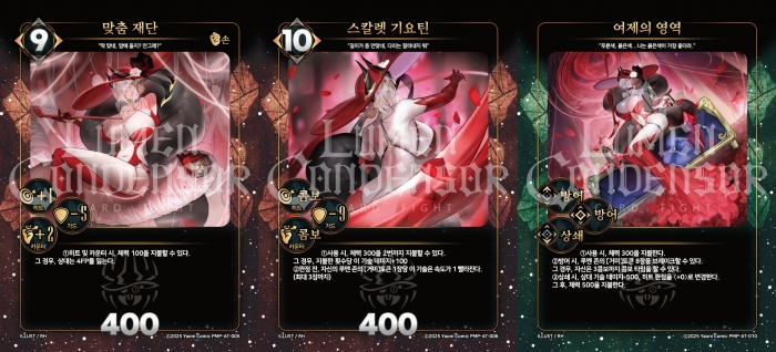 루멘콘덴서의 다섯 번째 확장 부스터팩 '프레데터 엠프레스'의 수록 카드 종류는 총 62종, 레어도 별로 구분하면 총 150종이라는 큰 볼륨으로 오는 5월 23일 발매 예정이다.