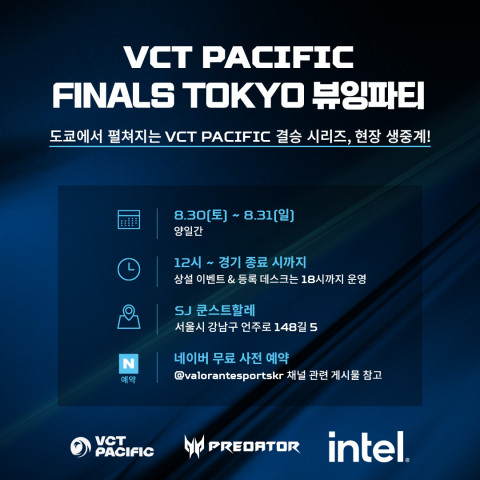 에이서의 고성능 게이밍 브랜드인 ‘프레데터’는 라이엇 게임즈의 글로벌 e스포츠 리그 ‘VCT 퍼시픽’ 공식 파트너로, 대회 현장에 사용되는 게이밍 PC와 중계용 노트북을 독점 지원한다. 이번 뷰잉파티에서는 도쿄에서 열리는 VCT 퍼시픽 스테이지 2 결승 시리즈가 생중계되며, 현장을 찾은 팬들이 함께 응원하고 소통할 수 있는 다양한 프로그램이 마련된다. 뷰잉파티는 매일 오후 12시부터 경기 종료 시까지 운영되며, 상설 이벤트와 등록 데스크는 오후 6시까지 운영된다.