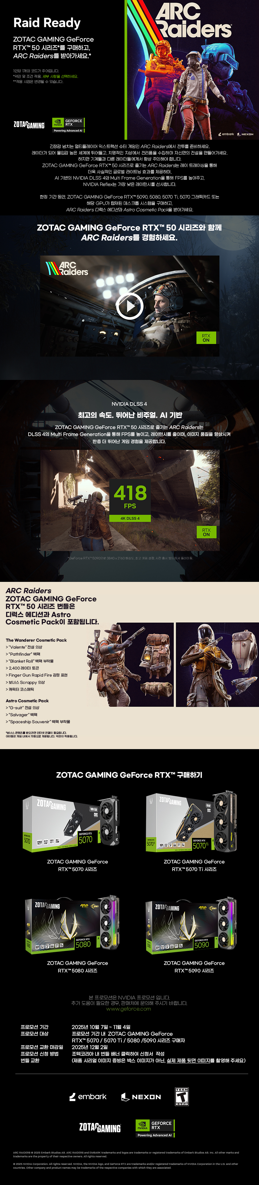 지포스 그래픽카드 전문 기업 조텍코리아(ZOTAC Korea)가 엔비디아와 함께 최신 지포스 기술이 적용된 ‘아크 레이더스 게임 번들 프로모션’을 진행한다.