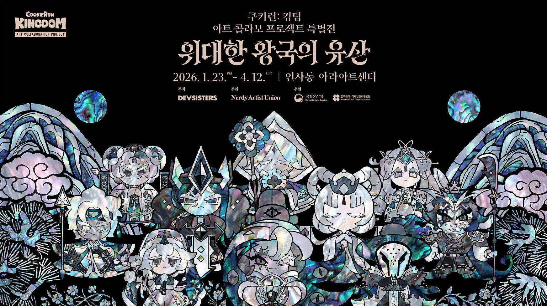 이번 특별전은 데브시스터즈가 지난 2년간 이어 온 특별한 아트 콜라보 프로젝트를 총망라하고 쿠키런 IP의 문화적 확장을 잇는 대규모 전시로, 국가유산청과 한국공예·디자인문화진흥원이 후원한다.