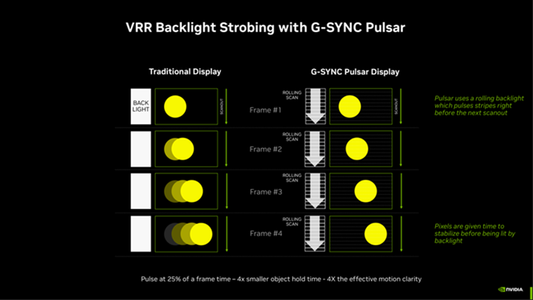 이번 주, 선구적인 VRR 기술의 최신 진화형인 지싱크 펄사 출시와 함께 차세대 지싱크가 시작됐다. 지싱크 펄사는 매우 부드러운 움직임과 끊김 없는 경험을 제공하며, 가변 주파수 백라이트 스트로빙 기술을 통해 시각적 선명도와 충실도의 새로운 기준을 제시한다.