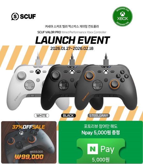 고성능 게이밍 컨트롤러의 선구자이자 커세어의 자회사인 ‘스커프 게이밍(SCUF Gaming)은 엑스박스(Xbox) 및 PC용 최신 프로급 유선 컨트롤러인 ‘스커프 벨러 프로 와이어드 퍼포먼스 컨트롤러(SCUF Valor Pro Wired Performance Controller/이하 벨러 프로 유선 컨트롤러)’를 출시한다고 밝혔다.