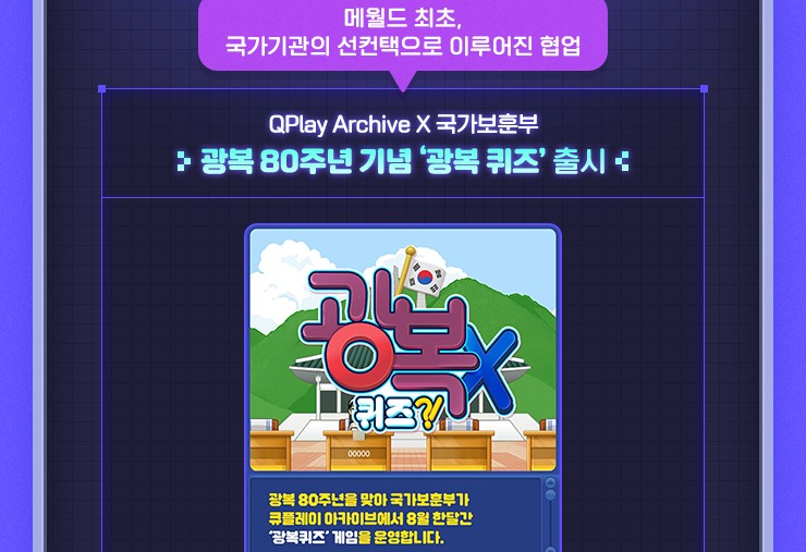 이와 함께, ‘메이플스토리 월드’의 사회적 영향력 역시 확대되었다. 국가보훈부의 제안으로 진행된 ‘큐플레이 아카이브’ 월드 협업을 통해 광복 80주년을 기념하는 ‘광복 퀴즈’ 콘텐츠를 운영했으며, 상호 참여형 플랫폼으로서의 긍정적인 사회적 가치를 보여주기도 했다.
