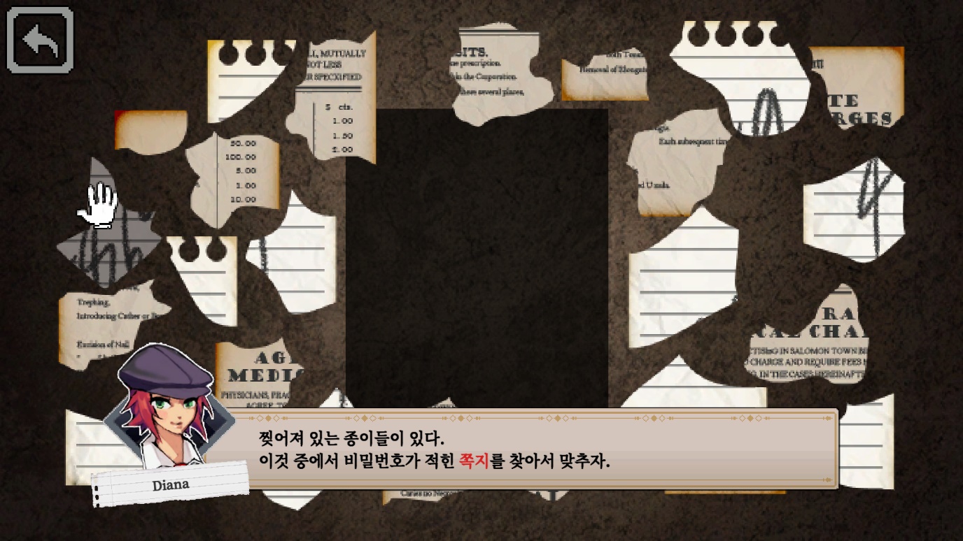 증거가 될만한 서류를 발견하라! 신문이나 경찰 조서, 방문록 등 게임에 존재하는 모든 텍스트에서