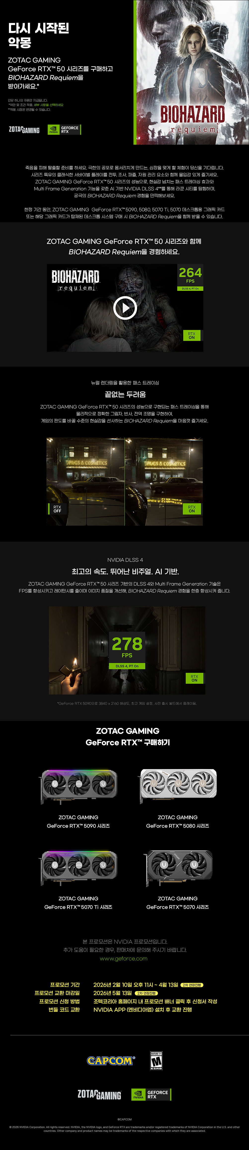 지포스 그래픽카드 전문 기업 조텍코리아(ZOTAC Korea)는 엔비디아와 함께 진행해 온 ‘바이오하자드 : 레퀴엠’ 게임 번들 프로모션을 연장 진행한다.