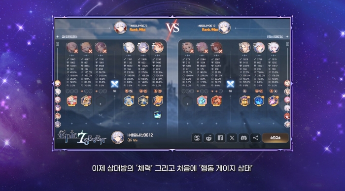 에픽세븐은 이번 쇼케이스에서 신규 e스포츠 리그 ‘에픽세븐 마스터스(E7 Masters)’ 출범도 공식 발표했다. 첫 방송은 4월 4일 낮 12시 트위치와 치지직을 통해 동시 송출되며, 시청 보상 쿠폰도 제공된다. 3월 29일부터는 최대 77회 무료 소환 이벤트가 진행되며, 향후 8.4 업데이트에서는 NPC와 실시간 밴픽을 진행하는 신규 전투 콘텐츠 ‘투신의 전장’이 추가될 예정이다. 쇼케이스 말미에는 생명의 잎사귀 15개와 전설 만능 강화석 3종 5개씩을 받을 수 있는 쿠폰 코드도 공개됐다.