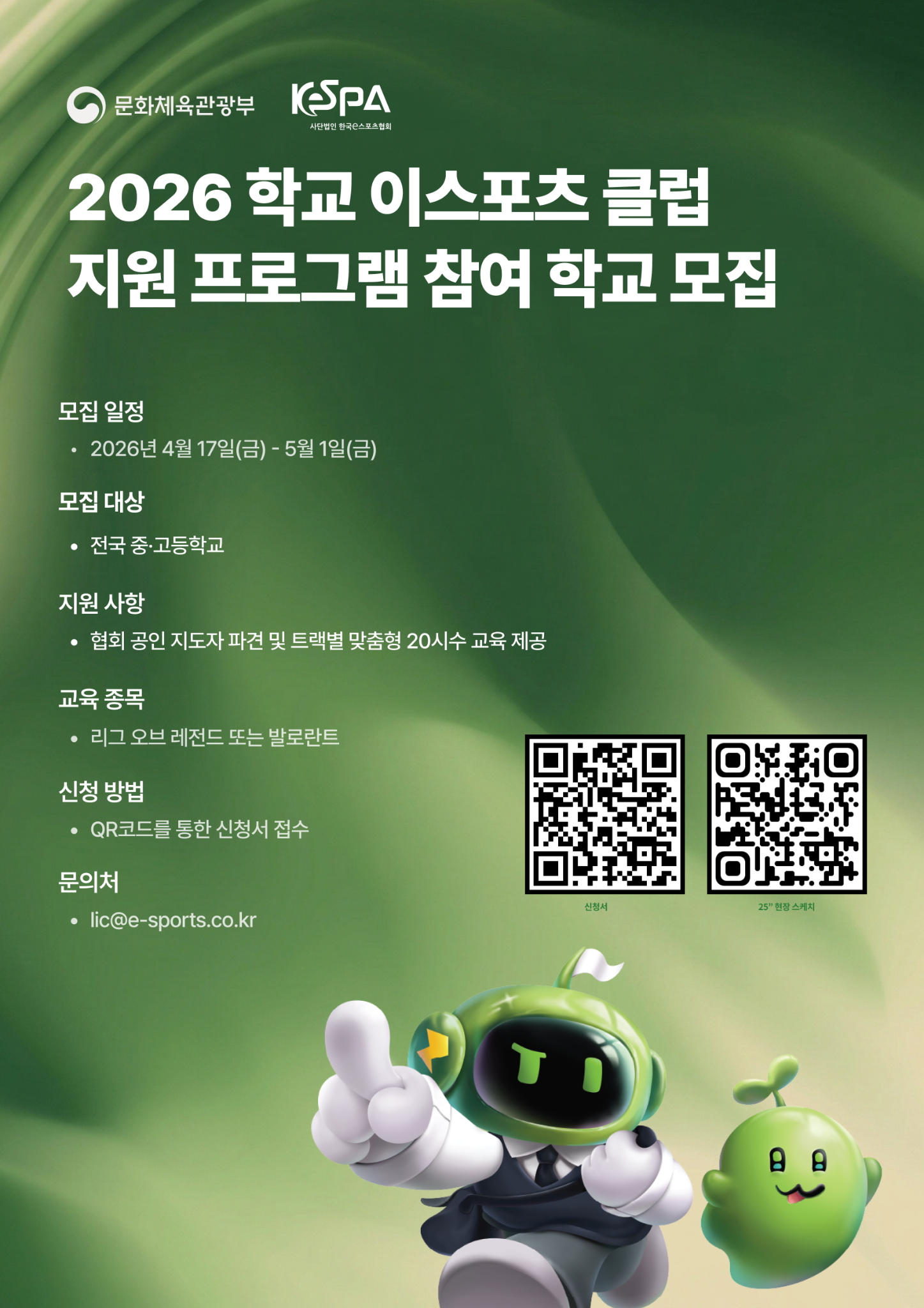 • [기타] KeSPA, 학교 이스포츠 강사 지원 프로그램 오픈! 참여 학교 모집 중