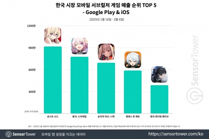 이러한 성과를 바탕으로, 센서타워는 《로스트 소드》가 국내 모바일 서브컬처 게임 중 다운로드 및 매출 순위 모두에서 1위를 기록했다고 밝혔다. 더불어, 한국 시장에서만 올린 매출만으로도 전 세계 서브컬처 게임 매출 순위 30위에 올랐으며, 2025년 현재까지 출시된 서브컬처 게임 중 가장 높은 매출을 기록한 것으로 집계됐다.