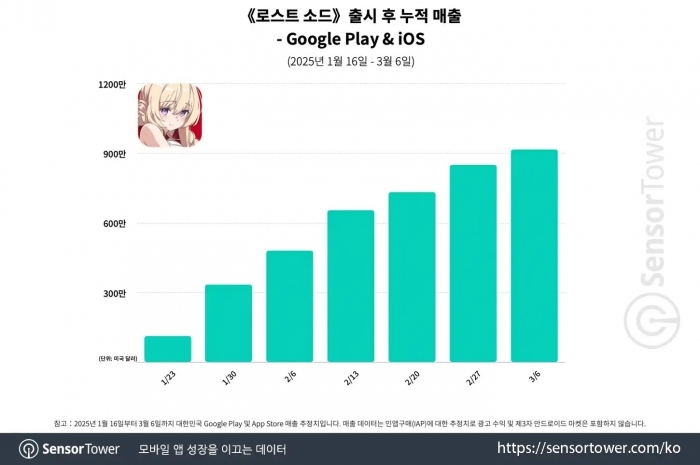 서브컬처 RPG 《로스트 소드》가 출시 50일 만에 누적 매출 1,000만 달러를 달성하며 국내 모바일 서브컬처 게임 시장에서 두각을 나타내고 있다.