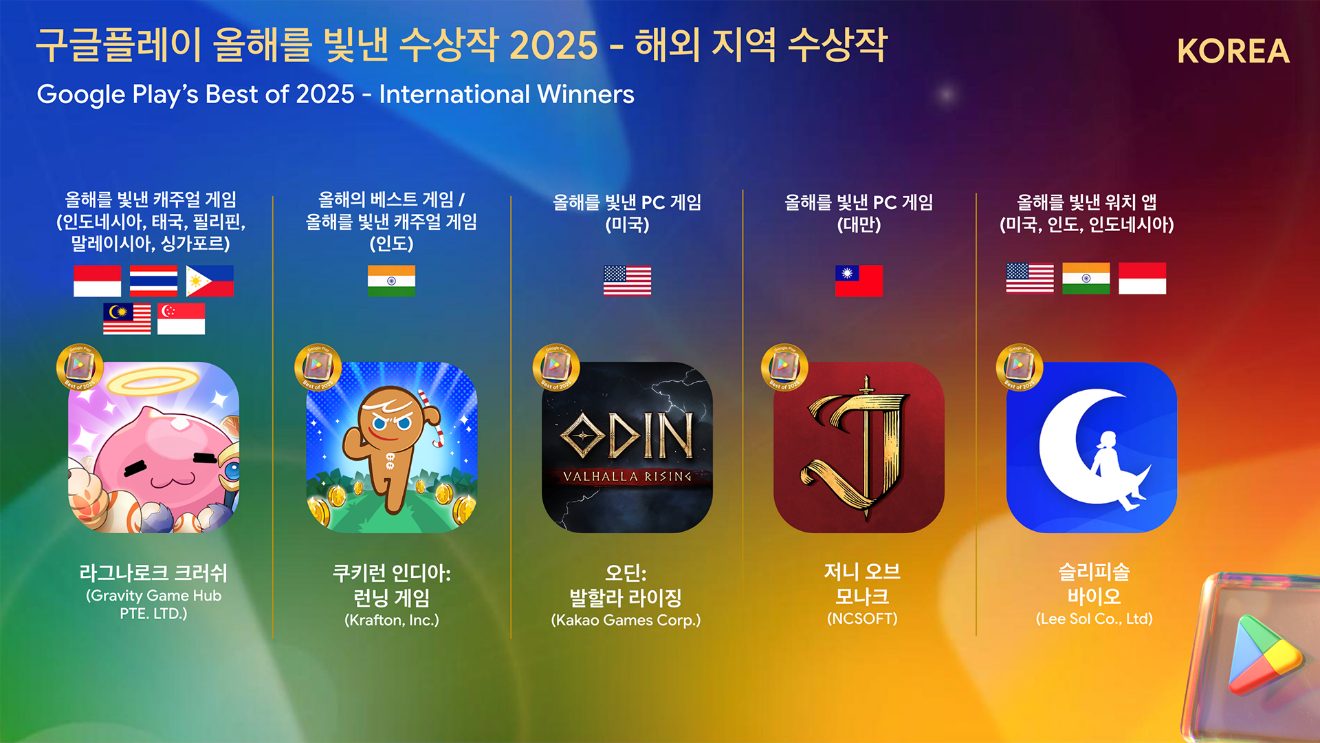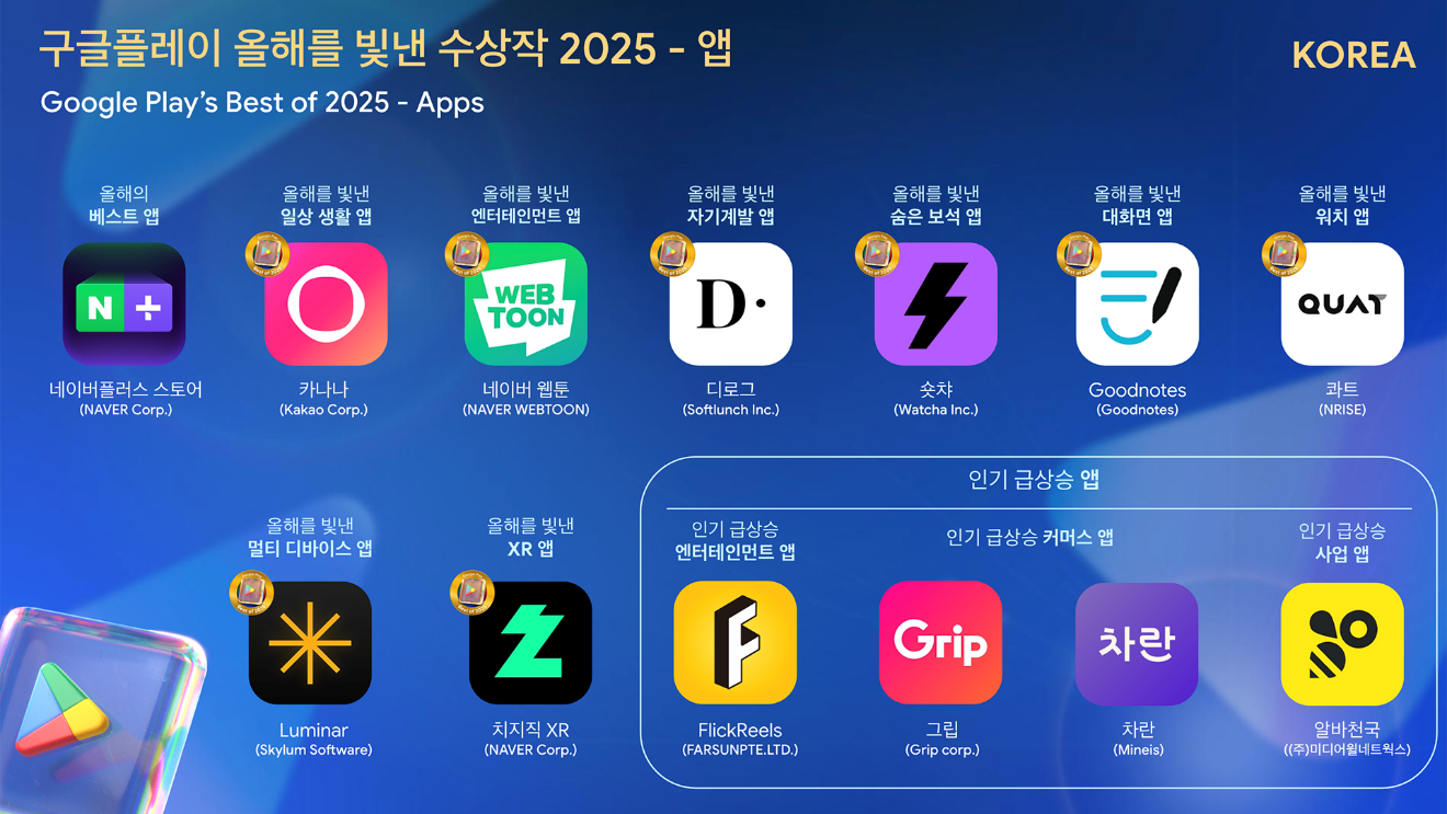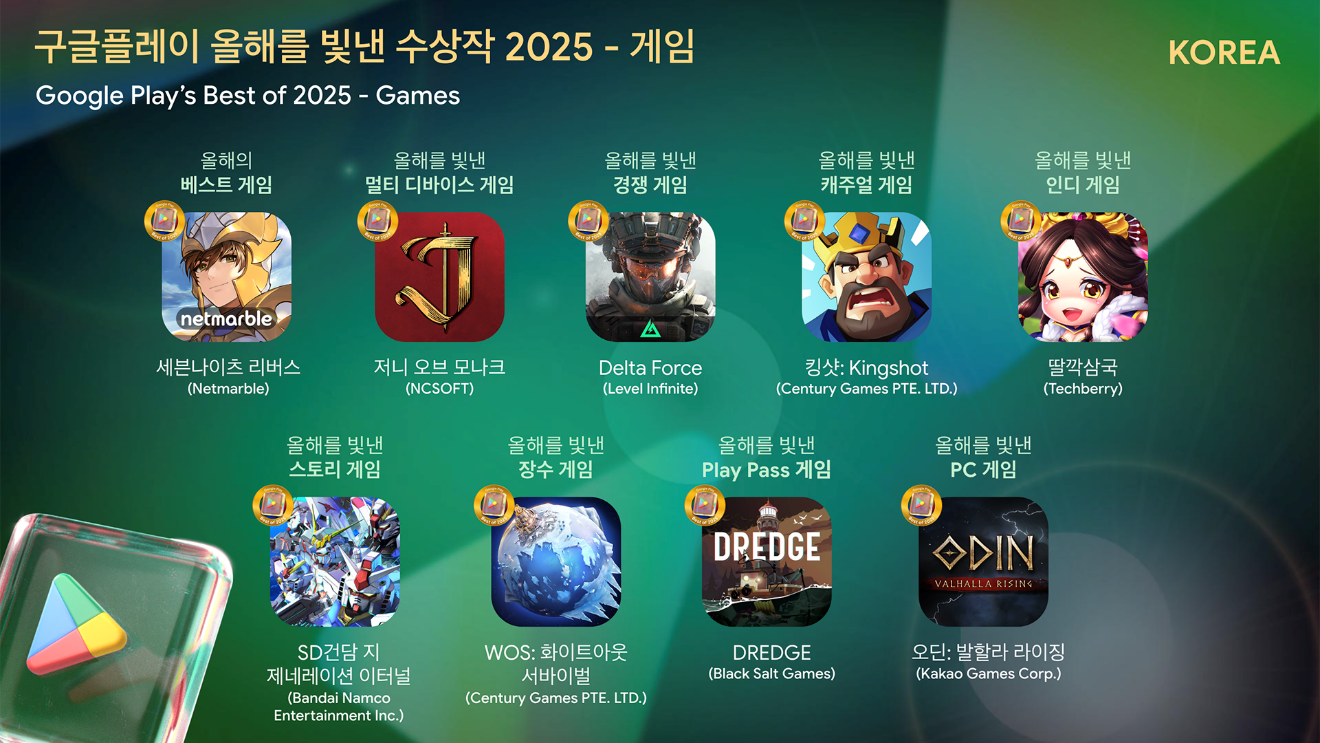 ‘구글플레이 올해를 빛낸 앱·게임’ 2025의 전체 수상작 리스트는 구글플레이 스토어 및 구글코리아 블로그에서 확인할 수 있다.