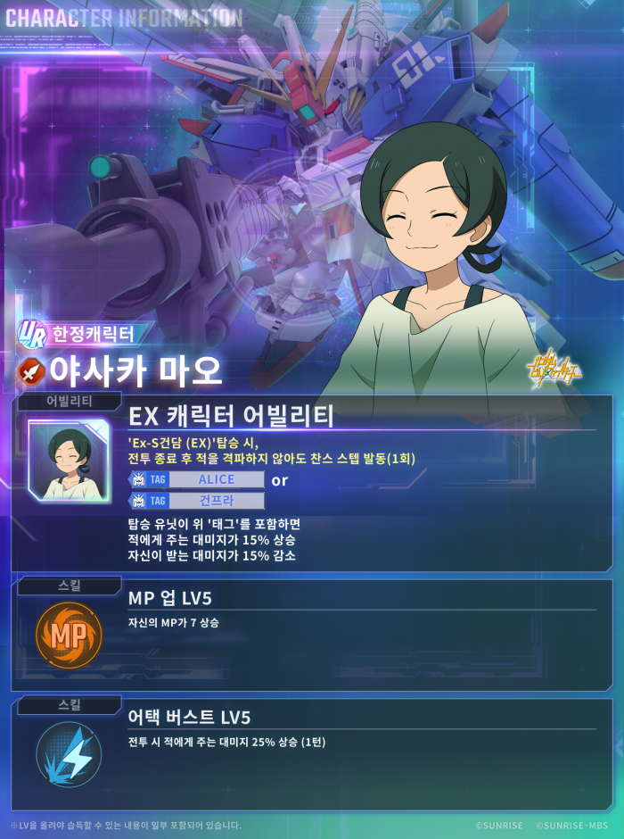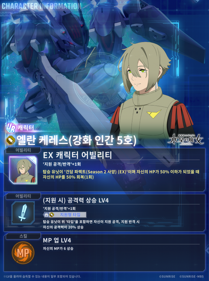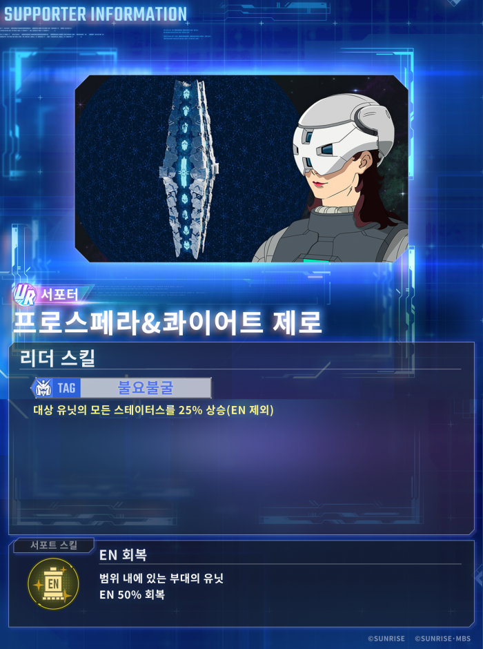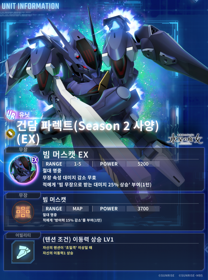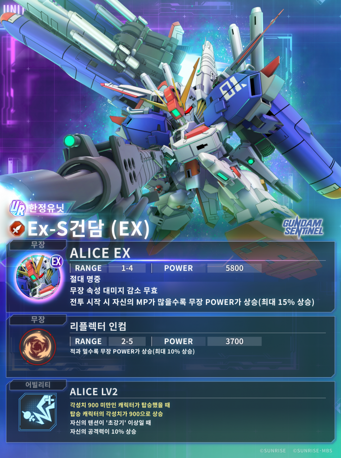 이와 함께 게임 내 콘텐츠도 대대적으로 업데이트되었다. 픽업 뽑기에는 강력한 성능을 자랑하는 UR ‘Ex-S건담 (EX)’과 UR ‘건담 파렉트(Season 2 사양) (EX)’가 기간 한정 유닛으로 새롭게 등장한다. 이외에도 UR ‘야사카 마오’, UR ‘엘란 케레스(강화 인간 5호)’ 등 캐릭터와 UR 서포터 ‘프로스페라 & 콰이어트 제로’도 추가되어 수집의 재미를 더했다.