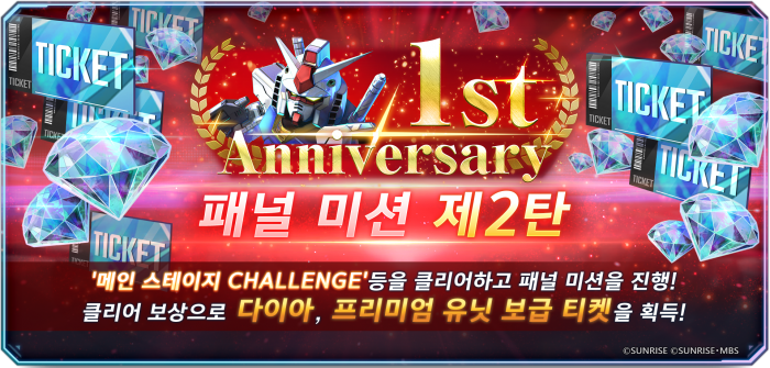 이번 1주년과 스토어 매출 1위라는 겹경사를 기념하여 모든 유저에게 파격적인 혜택을 제공한다. 먼저 서비스 1주년을 기념한 ‘1st 애니버서리 패널 미션 제2탄’을 통해 총 3,000개의 다이아와 최대 10장의 프리미엄 뽑기 티켓을 증정한다. 또한, 일본 스토어 매출 순위 1위 달성에 대한 감사의 의미로 모든 유저에게 뽑기 10회분에 해당되는 다이아 3,000개를 추가로 선물한다. 이번 이벤트를 통해 대량의 다이아를 확보하여 전력을 대폭 강화할 수 있다.