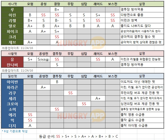 • [모바일] 세븐나이츠 6성 펫 등급표, 신규 대세 펫 ‘유’